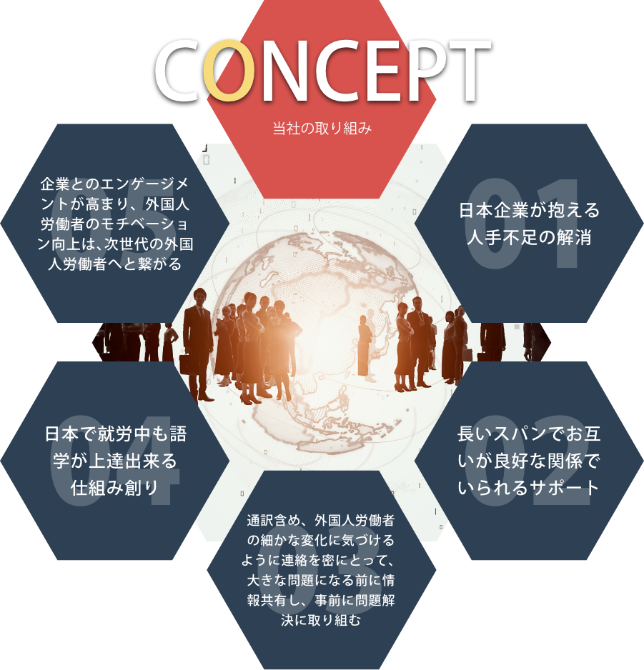 日本で働くことに夢や希望を抱く外国人と、外国人労働者を求める日本の企業双方の「WIN WIN」を目指す架け橋になります。